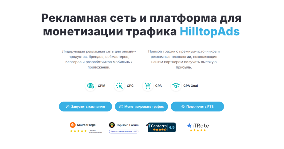 HilltopAds — рекламная сеть с обширным трафиком, поддерживающая различные форматы рекламы и множество моделей оплаты. Преимущества HilltopAds включают продвинутую фильтрацию трафика, гибкие настройки таргетинга и продвинутые инструменты для вебмастеров. Высокое качество трафика, компетентная поддержка на нескольких языках, включая русский, удобный личный кабинет делают HilltopAds отличным выбором.
