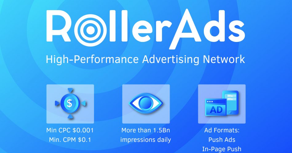 RollerAds — рекламная сеть с пуш и кликандер трафиком. Более 2 миллиардов дневной объем показов, более 5 миллионов кликов в день. Трафик от прямых паблишеров, не ресейл, к сети подключено более 10 000 вебмастеров. Минимальная цена клика всего — 0,001$.
